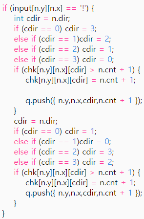 if (chk[n.y][n.x][cdir] > n.cnt + 1) {