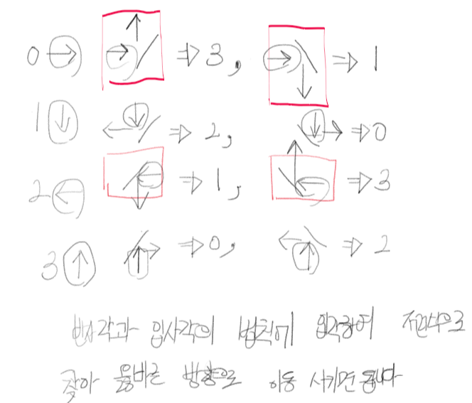 0번 인덱스에는 오른쪽으로 /1번 인덱스는 아래쪽 /2번 인덱스는 왼쪽 /3번 인덱스는 위쪽 이렇게 생각하셔서