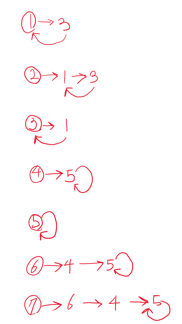 자기 자신의 번호로 시작해서 dfs를 이용해서 자기 자신의 번호로 오는 번호만