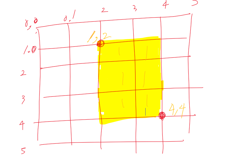 1, 2 과 사각형의 왼쪽 아래 꼭짓점 x좌표 , y좌표 즉