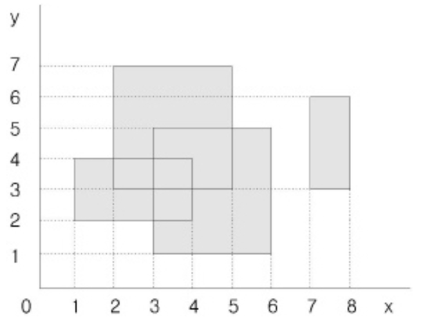 2669번: 직사각형 네개의 합집합의 면적 구하기