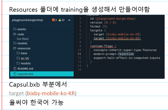 폴더아래 capsul.bxb라는 파일이 있는데 거기에 저는 타겟이 영어로만 되어있더라구요 개발을 영어음성을 분석을 하면 그대로 둬도 되는데 한국어를 사용해서 분석하려면 저부분이 써져있어야합니다. 저렇게 쓰시면