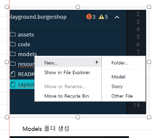 우리는 캡슐을 만들기에 앞서 모델스 라는 폴더를 만들어야합니다. 이부분에서 전반적으로 분석해서 코드로 보내어