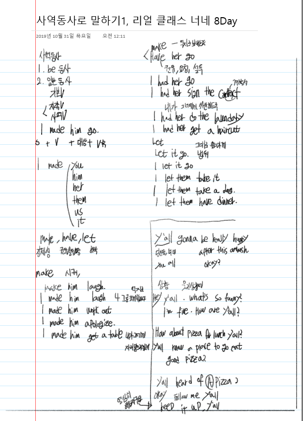 | 회화 - 사역동사 말하기2 (get to R) , 리얼클래스 9Day 완전의 강조 (0) | 2019.11.01 |