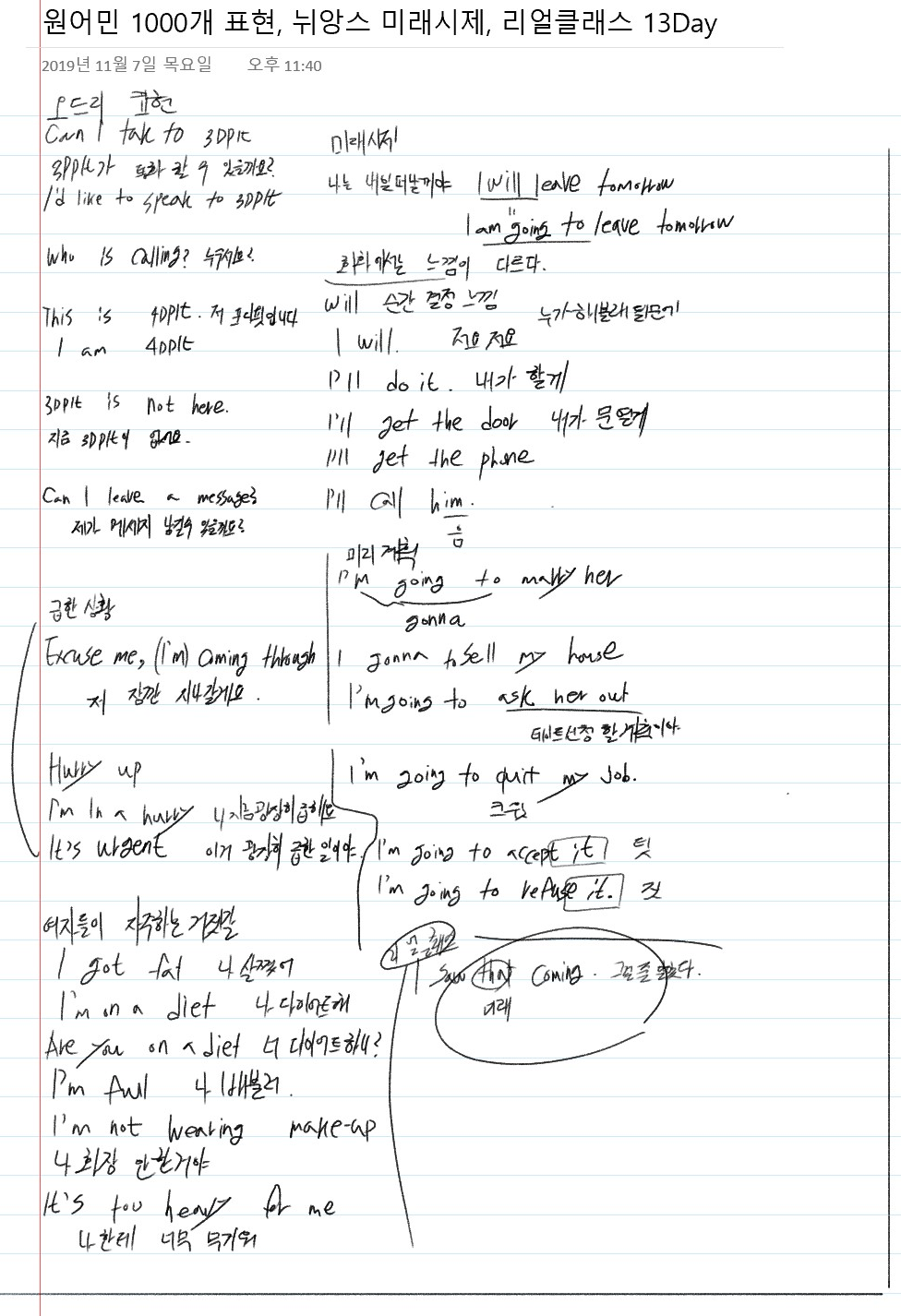 | 회화 - 원어민 상황 표현, 뉘앙스 현재,과거,미래 연습, 리얼클래스 13Day (0) | 2019.11.09 |