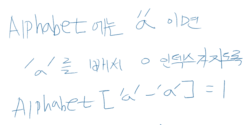 K가 6이라면 K-5 이미배운 5개의 알파벳을 제외하고 나머지 알파벳에 21개에 대해서