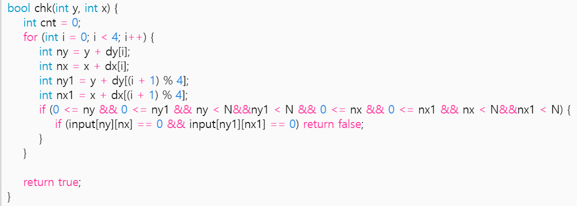 if (input[ny][nx] == 0 && input[ny1][nx1] == 0) return false;