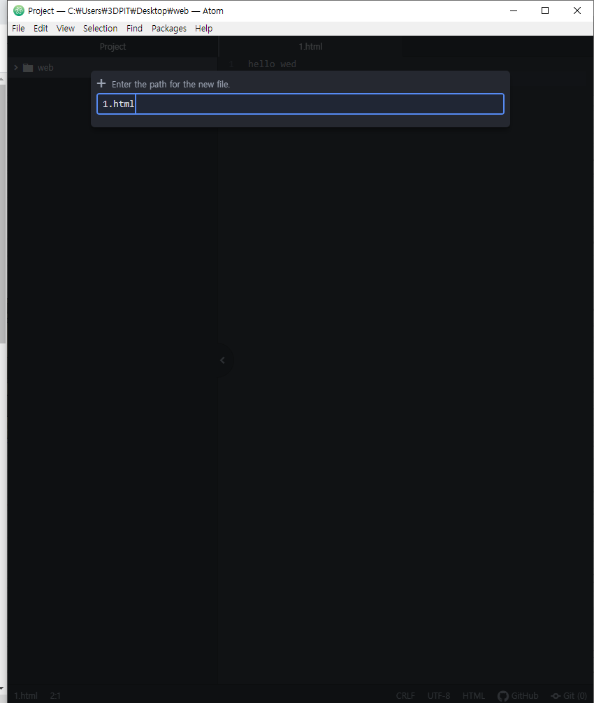 wed이라는 폴더를 만들고 그것을 열어보겠습니다.