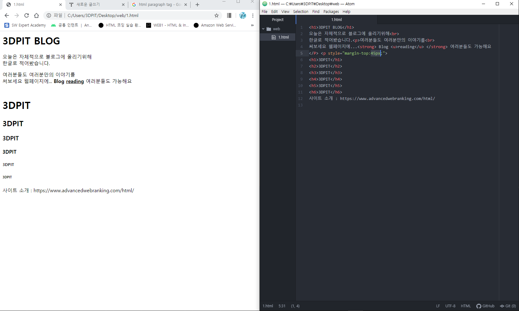 줄바꿈은 <br> 과 <p> </p> 가 있다.