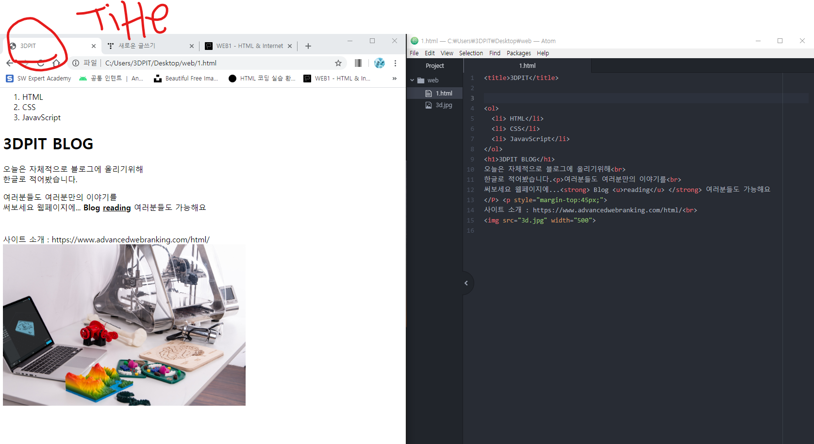 현재 사이트가 무엇인지 명시해주는 방법으로 title 태그를 사용합니다.