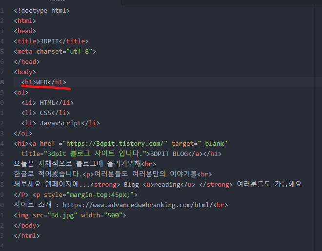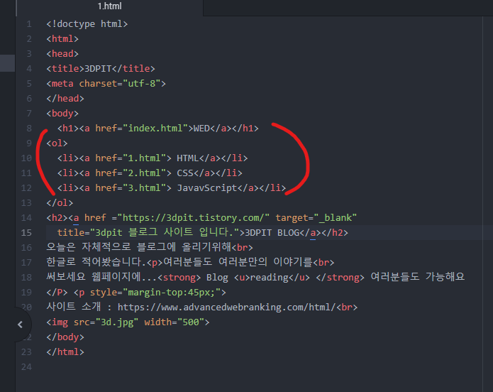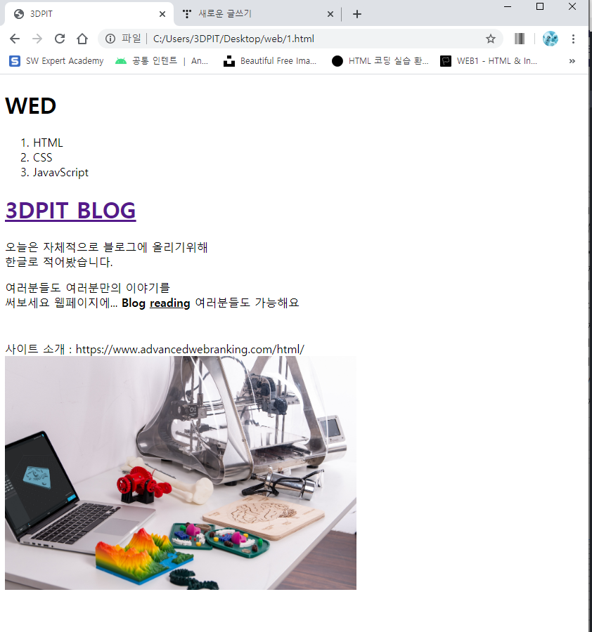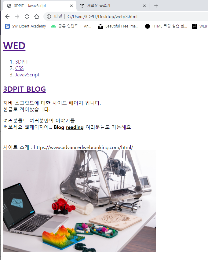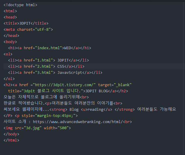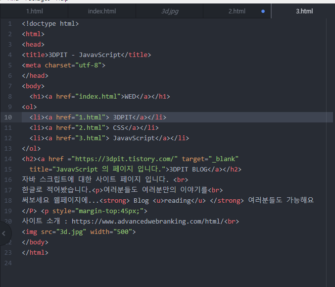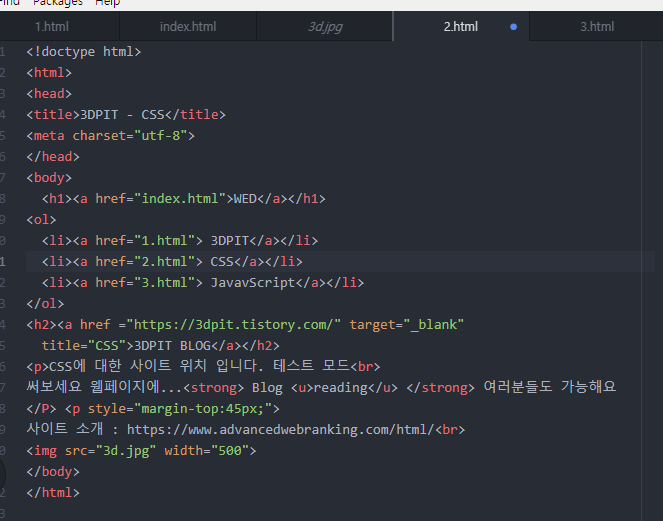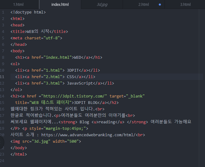 방법은 처음 1.html을 만들었던것과 같이 2.html 을 만들어주는것이죠 그냥 복사해서