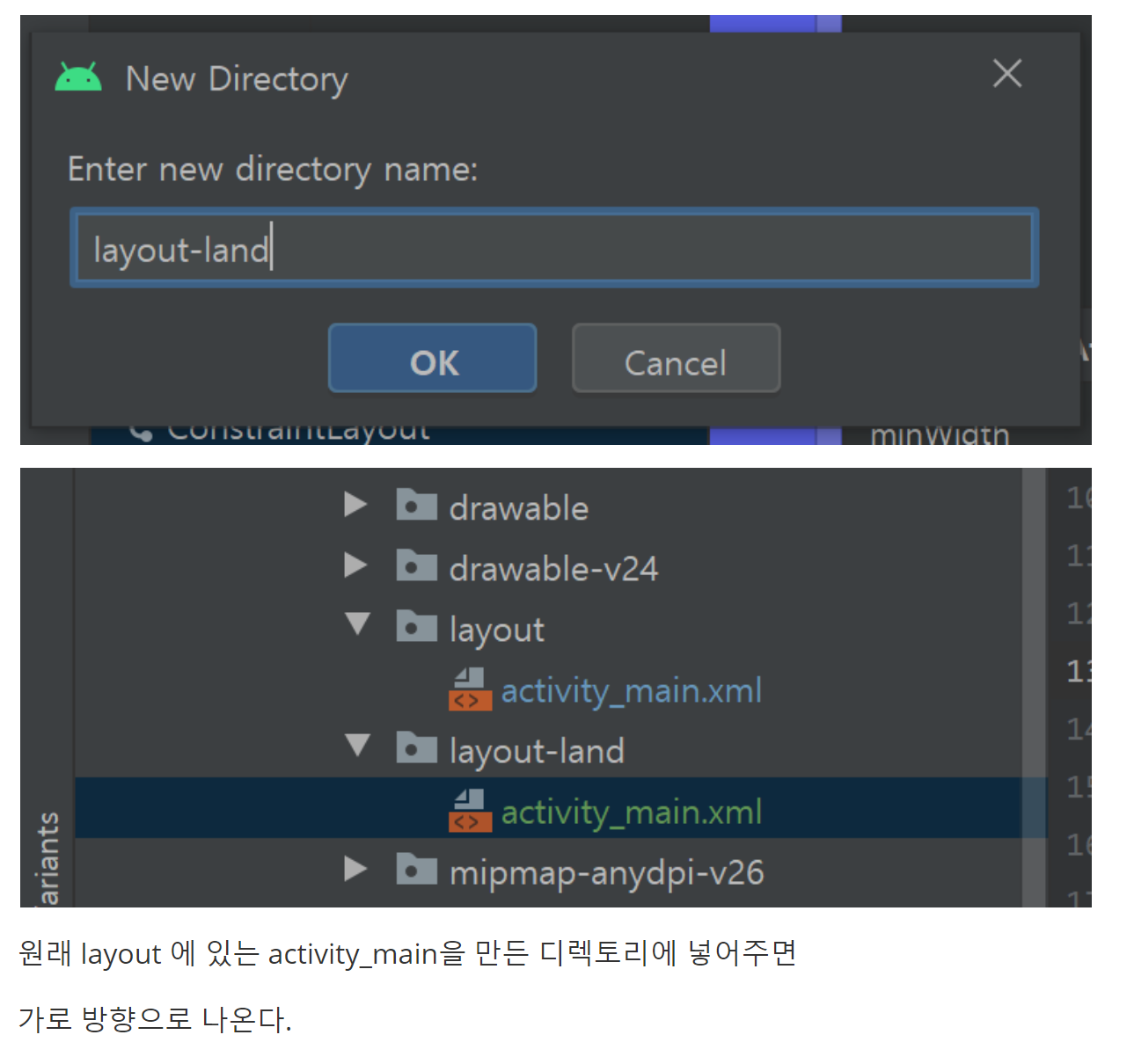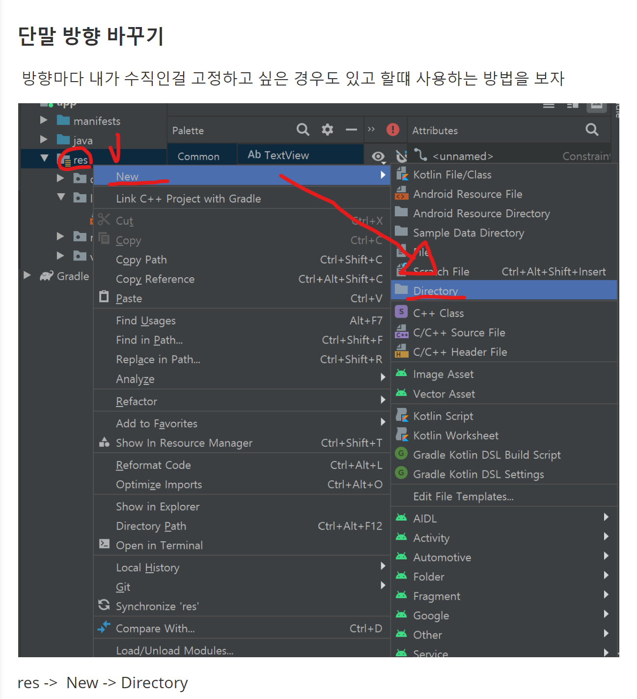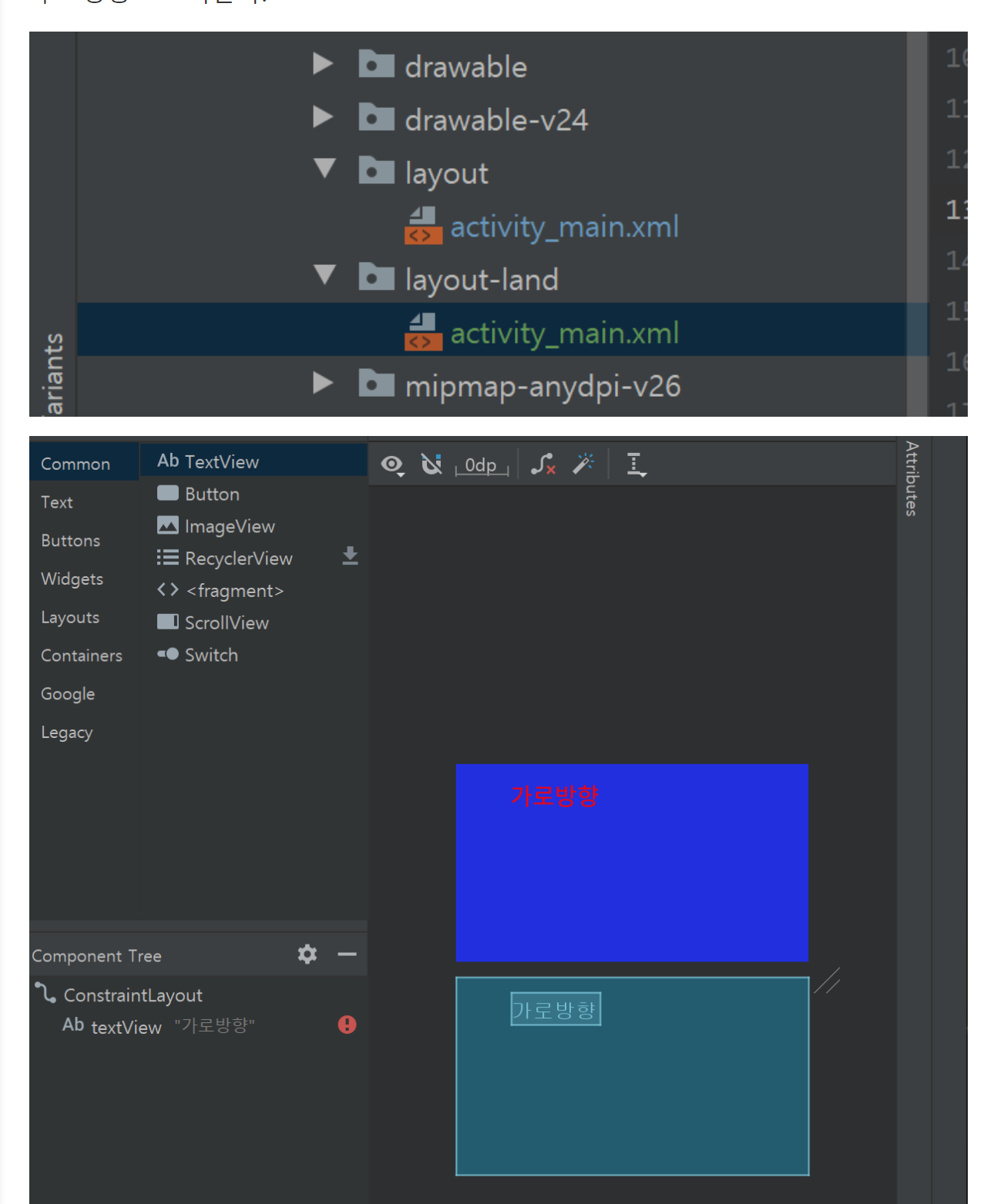 android:text="세로방향"