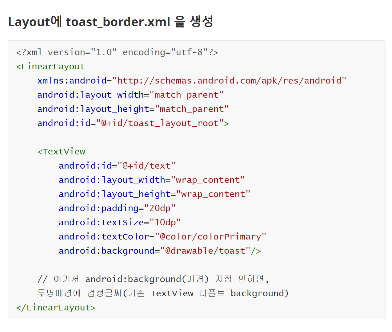 * layout의 toast_border.xml을 View를 이용해서