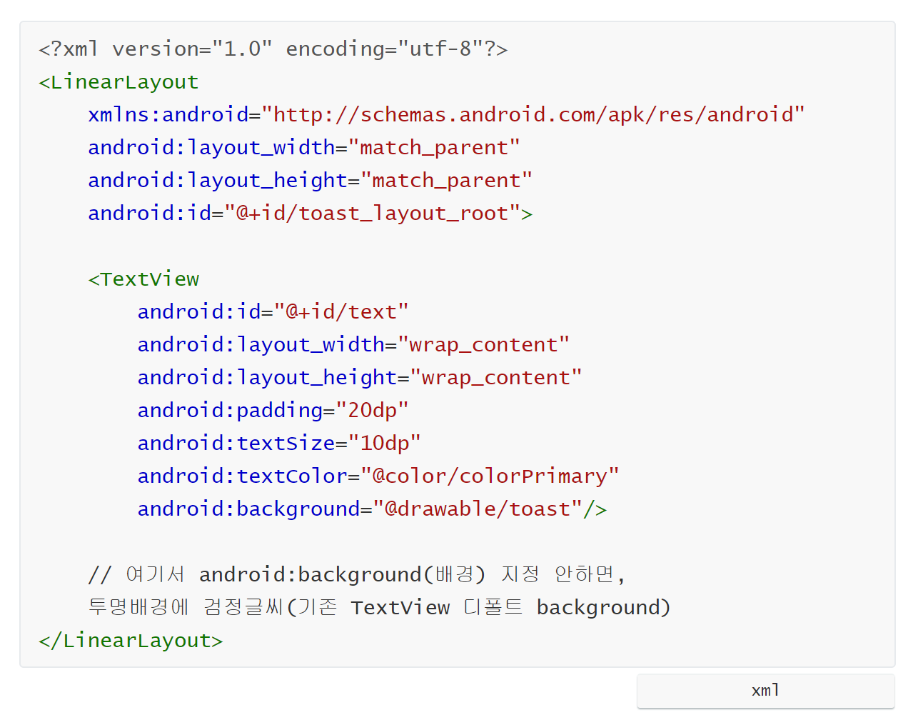 text.setText("토스트 메시지 입니다.");