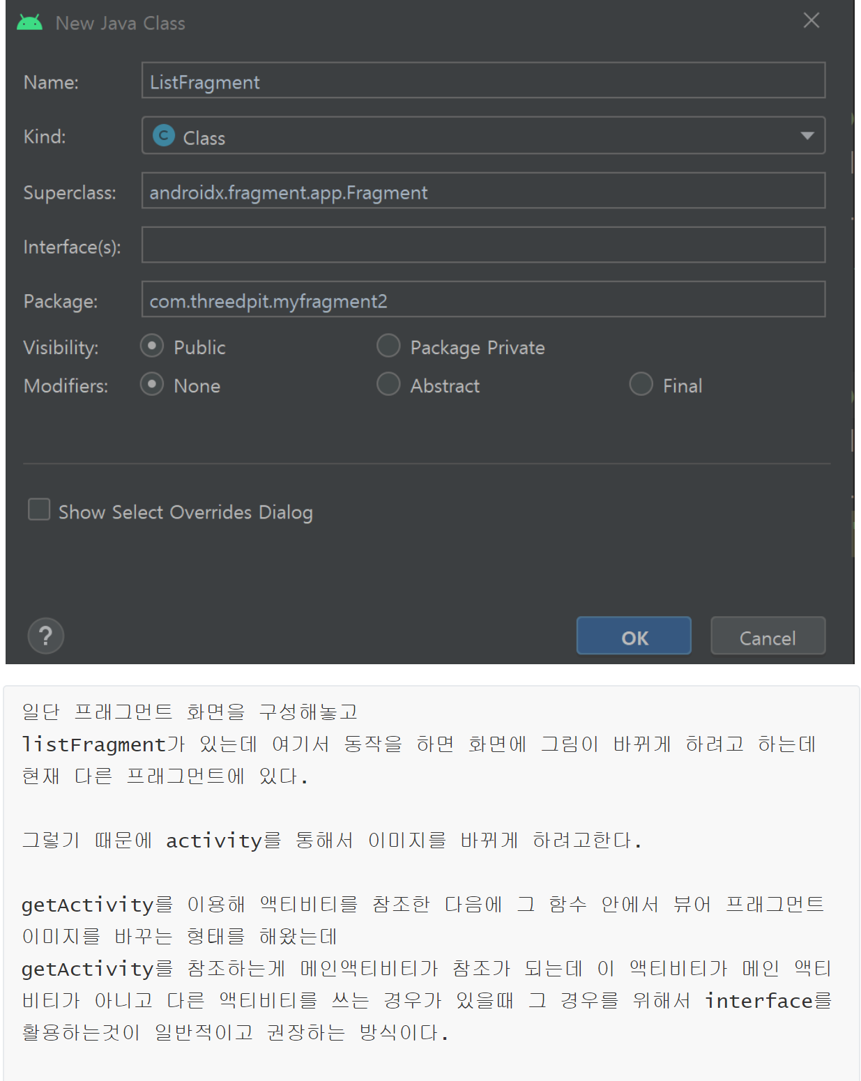 //프래그먼트는 액티비티 위에 생성되는것으로