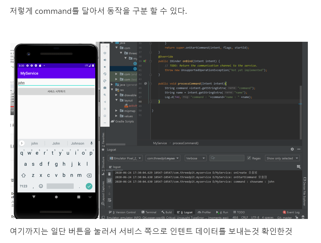 showIntent.putExtra("command","show");//우리가 전달 받은것을 다시 보내기
