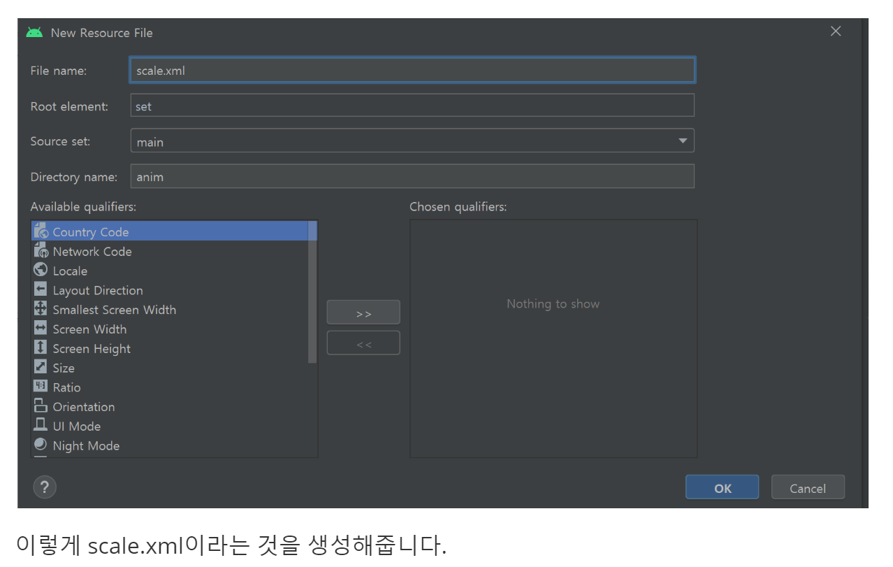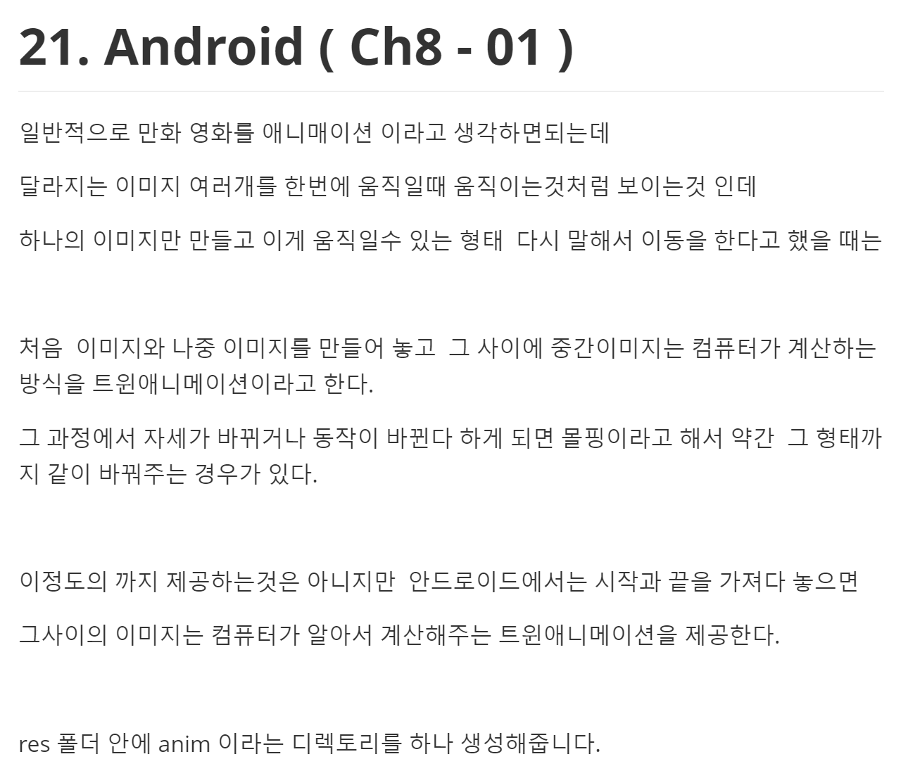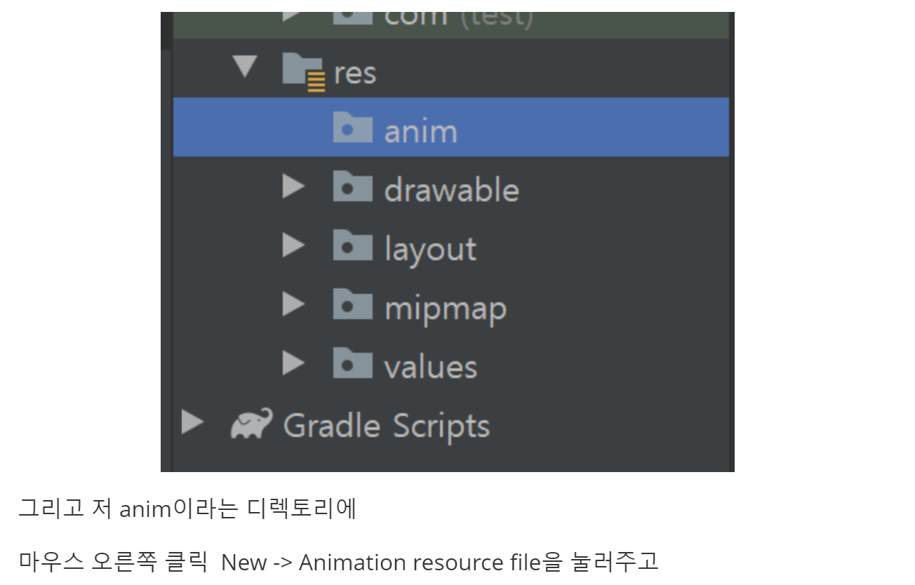 그리고 anim이라는 디렉토리를 res폴더 아래에 하나 만들고
