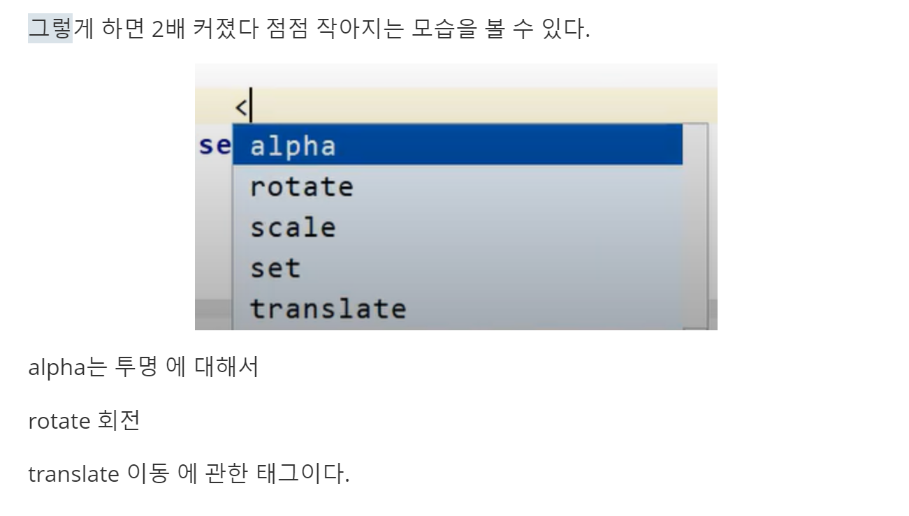 fillAfter 이것은 애니메이션이 끝나고 마지막 위치고 둘것인지
