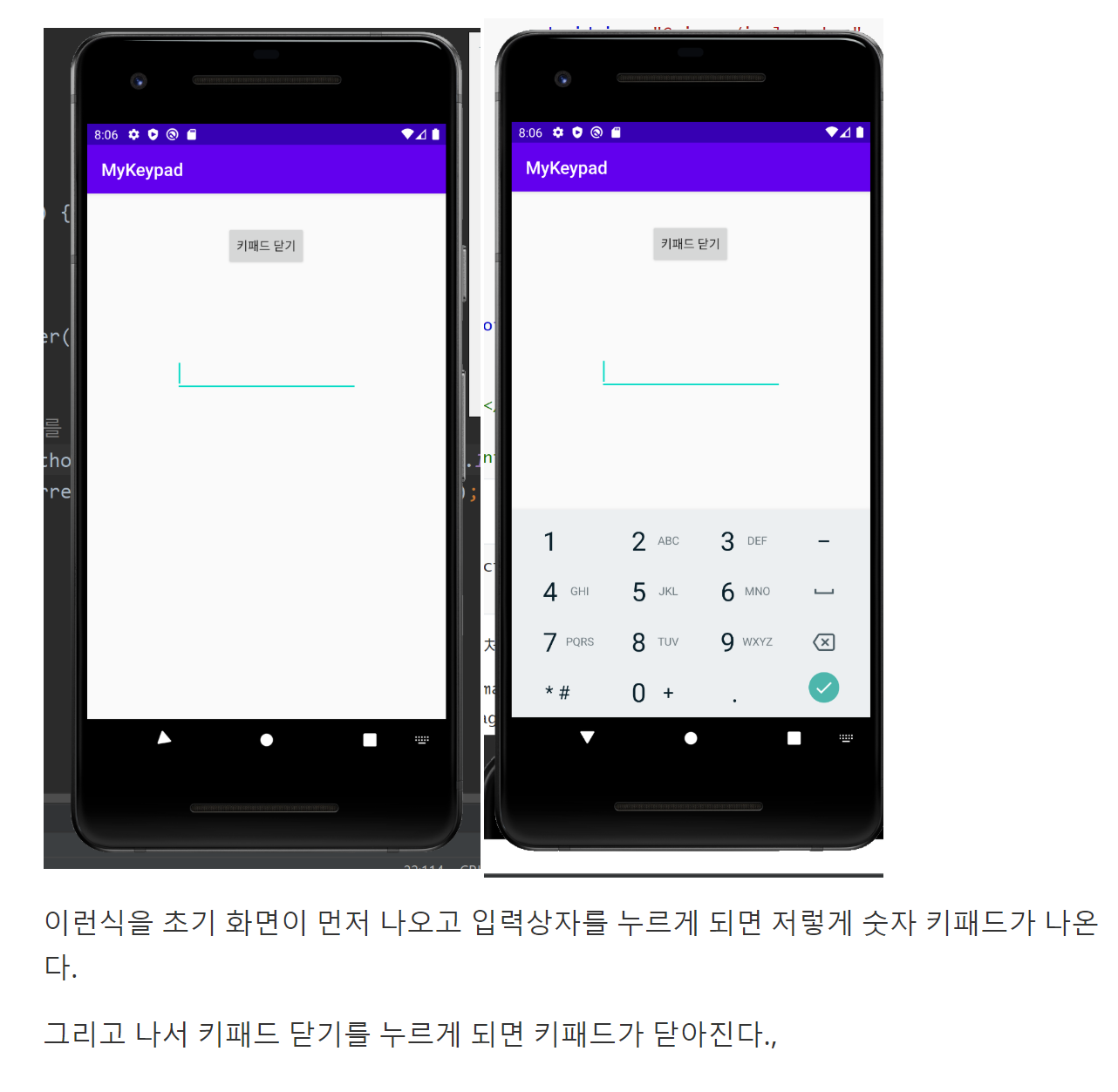 android:text="키패드 닫기"