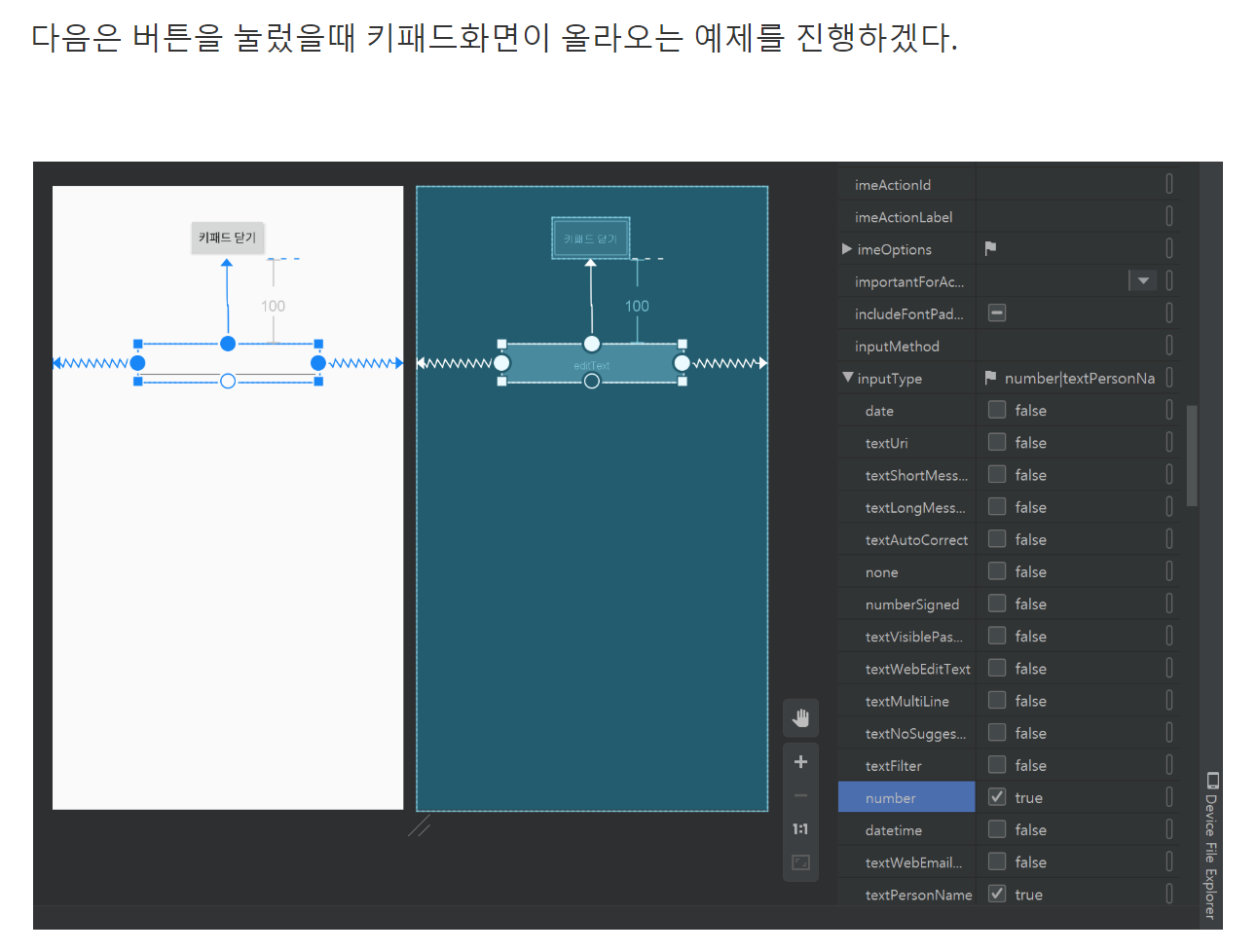 화면을 이렇게 구성해주고 입력상자를 누르는 경우에 숫자패드가 나오게 해준다.