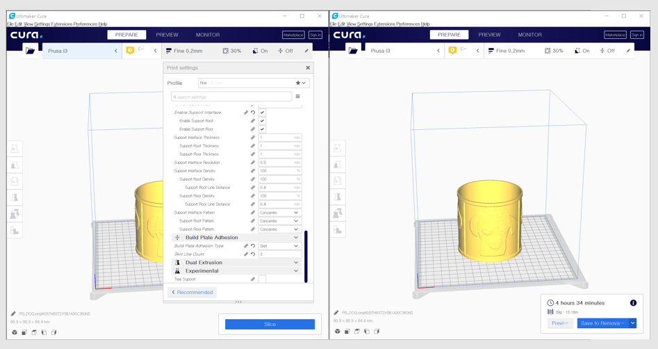 설정을 하시고 slice 버튼을 누르면 시간이 나오는데 저는 4시간 34분이 나오네요.