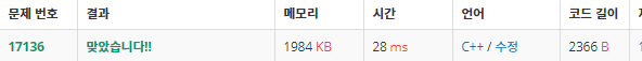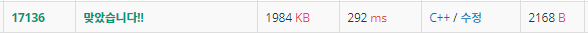 이걸 하나더 쓰는것만으로도 가지치기가 되어 처음 했던것에 비해 10배나 빨라진것을 볼 수 있습니다. 최소를 뽑아내는 과정인데 이미 최소보다 cnt가 커지는 경우는 볼 필요가 없으니 제외해도 되겠죠 이런식으로 항상 효율을 따져 보면 좋습니다. 그냥 문제 푸는것만으로 끝내는 것보다 더빠르게 할 방법을 없을까 항상 고민해보는것도 좋은것 같습니다.