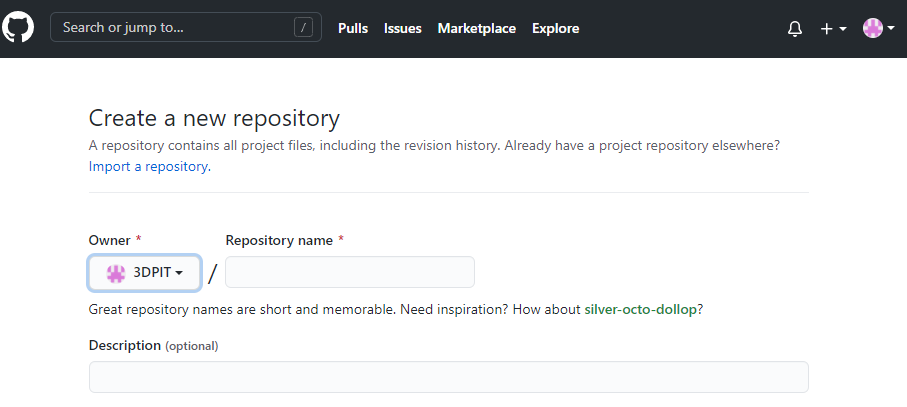 new 버튼을 눌러서 Repository name 부분에 원하는 이름 써서 생성을 합니다.