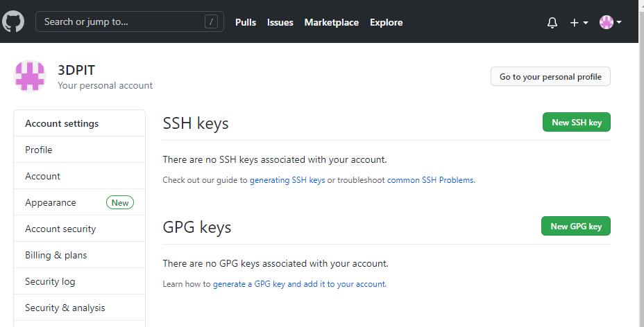 여기서SSH and GPG ketys 눌러서