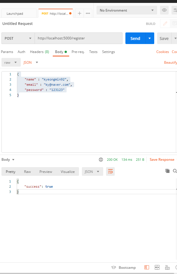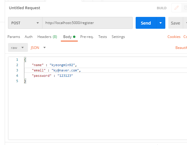 여기까지 회원가입을 위한 라우터를 만든것이다.