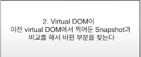 이 리스트들을 스냅샷으로 찍어놓고 스냅샷 찍은거랑 새로 살펴본것에서 차이 분석해서 그 부분만 realDom에서 바꿔주는것이다.
