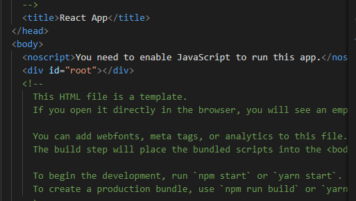 index.html에 보여주는 부분을 <App/>이라고 정의 해주는것이다.