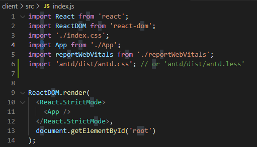 import 'antd/dist/antd.css'; // or 'antd/dist/antd.less'