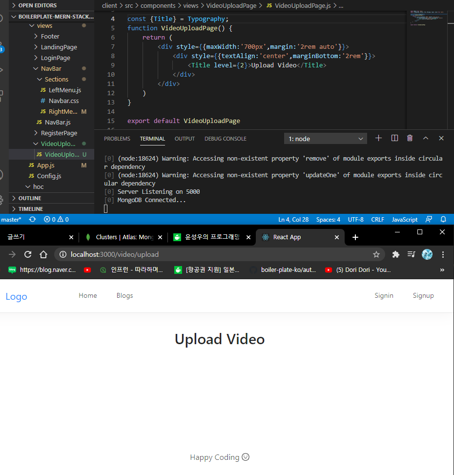 VideoUploadPage.js 파일 생성 해주세요