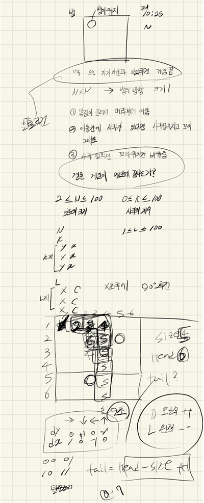 - 그리고 내가 잠깐 실수한 부분은 dir++ , dir-- 그러니까 방향 변화 시킬때 소스를 잘못 구현한 실수가 있었음