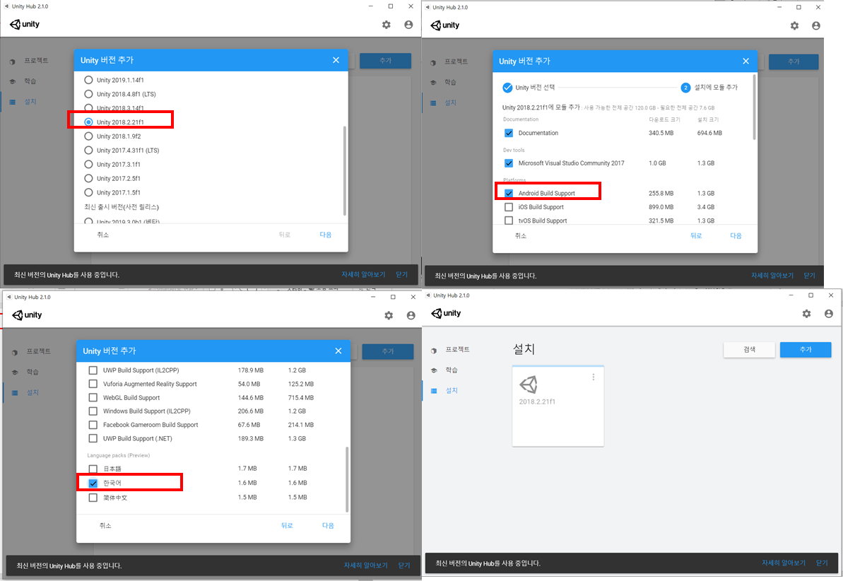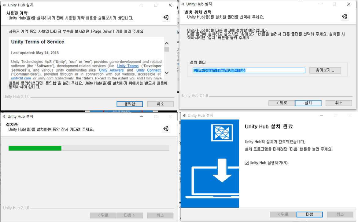 아직 유니티 설치가 아니고 허브를 설치 한거라 좀더 하셔야합니다.