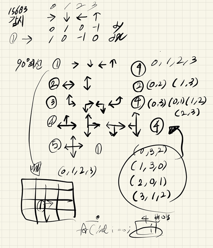 - 완전탐색의 완전 기초이기 때문에 잘 알아야하고 진짜 포인트는 CCTV 방향을 잘 계산해야하고 그배열에 감시 영역 찍을때 제대로 찍고 복원을 잘해야함