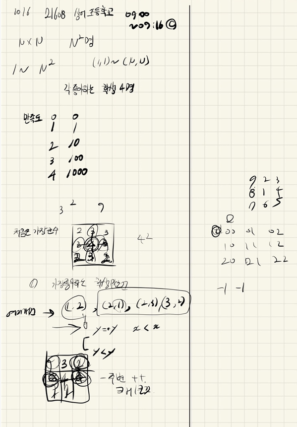 // // 3 2를 만족하는 칸도 여러 개인 경우에는 행의 번호가 가장 작은 칸으로, 그러한 칸도 여러 개이면 열의 번호가 가장 작은 칸으로 자리를 정한다.