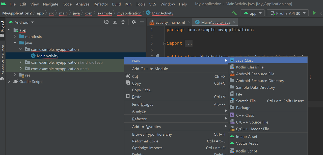 - New -> Java Class를 클릭
