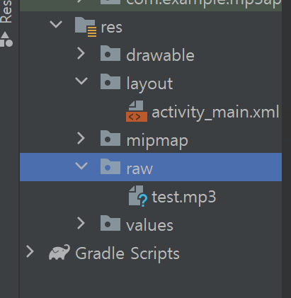 - 그렇게 하고 mp3파일을 생성된 raw넣는다.