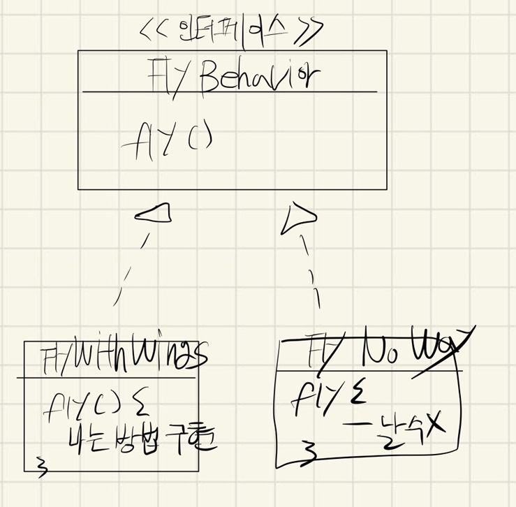 - 이곳에서는 현재 FlyBehavior와 QuackBehavior이라는 두 인터페이스를 사용
