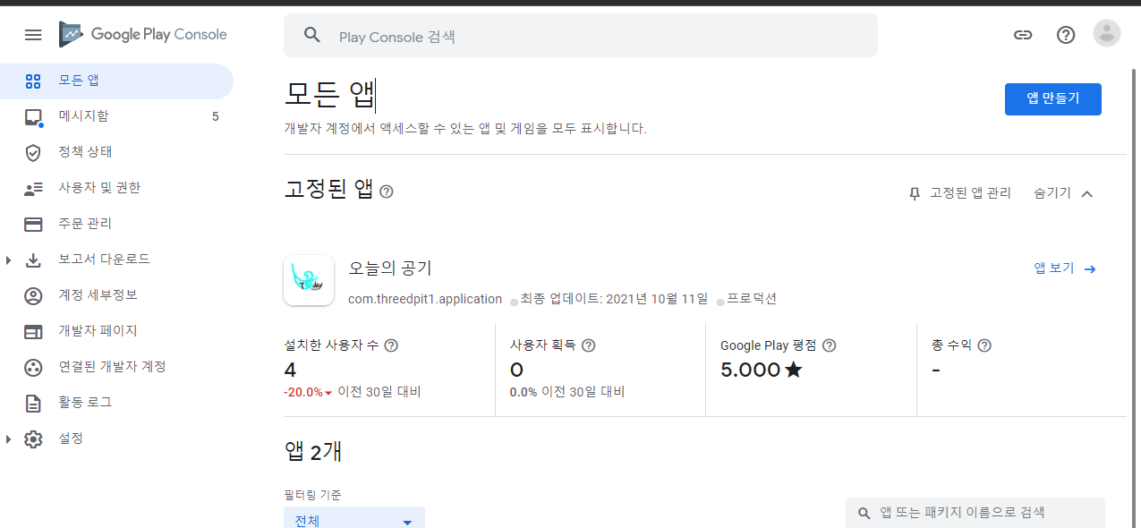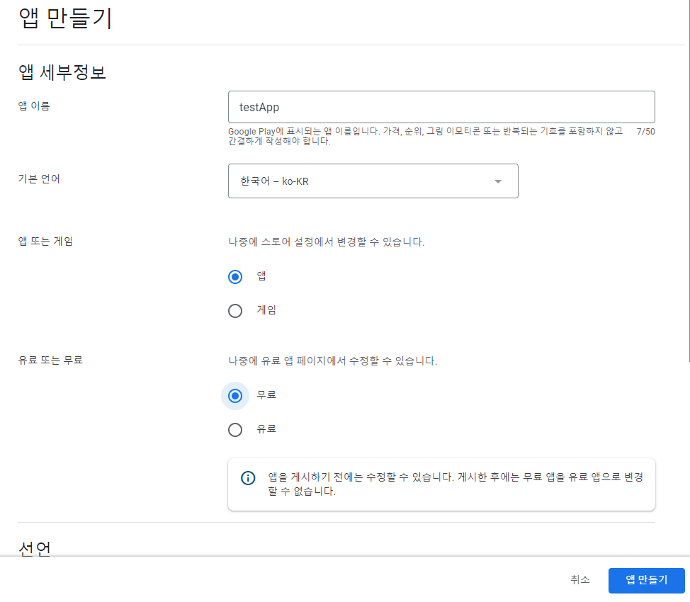 - 앱만들기 클릭