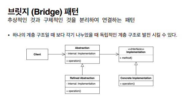- 둘을 나눠서 구현한다는 의미로 브릿지