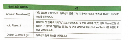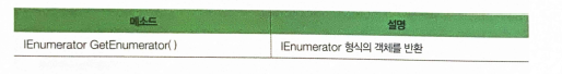 - GetEnumerator() 메소드는 IEnumerator 형식의 객체