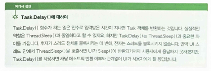 - 단, async로 한정하는 메소드는 반환 형식이 Task나 Task또는 void여야 한다는 제약이 있음