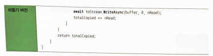 - CopyAsync()는 메소드가 실행되는 중간에도 여전히 사용자가 사용자 인터페이스에 접근하는 데 아무런 문제가 없게 함