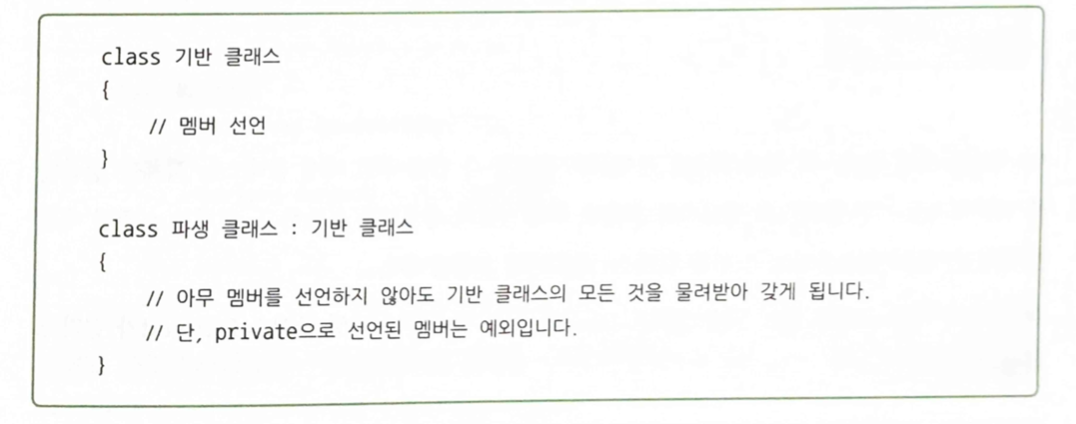 - 파생 클래스는 객체를 생성할 때 내부적으로 기반 클래스 호출 후 자신의 생성자 호출하고 객체가 소멸될 때는 반대의 순서대로