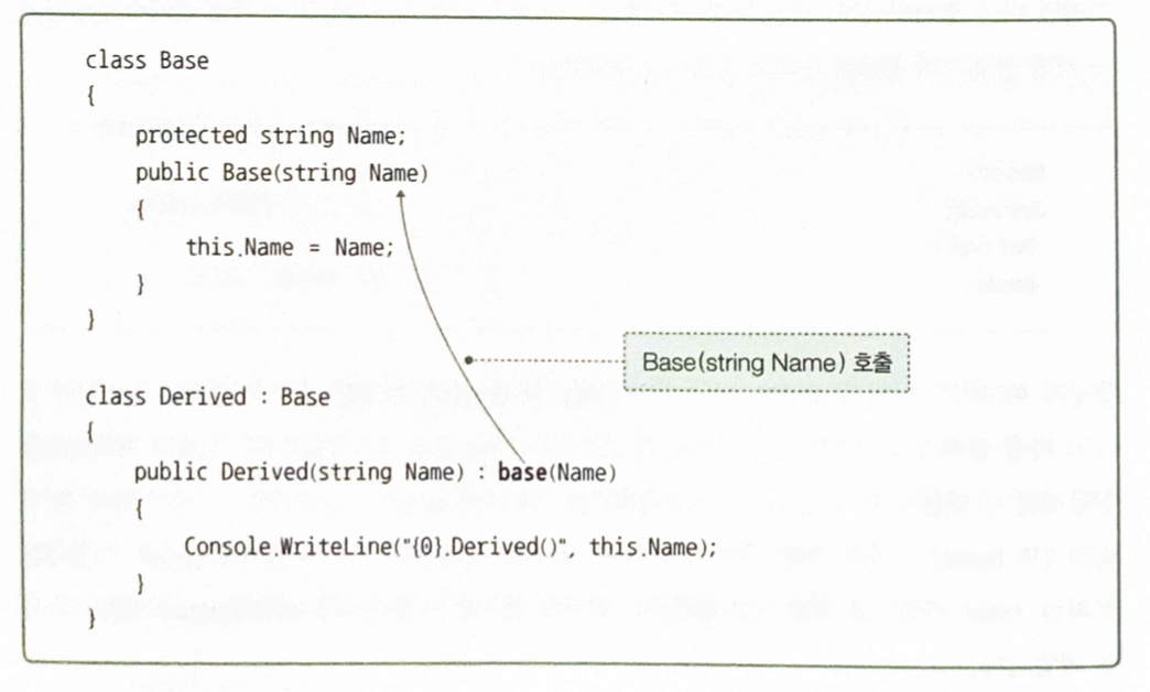 - Base()생성자를 통해 Name 필드를 초기화 할 수 있음