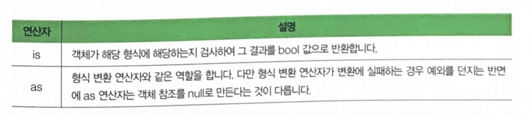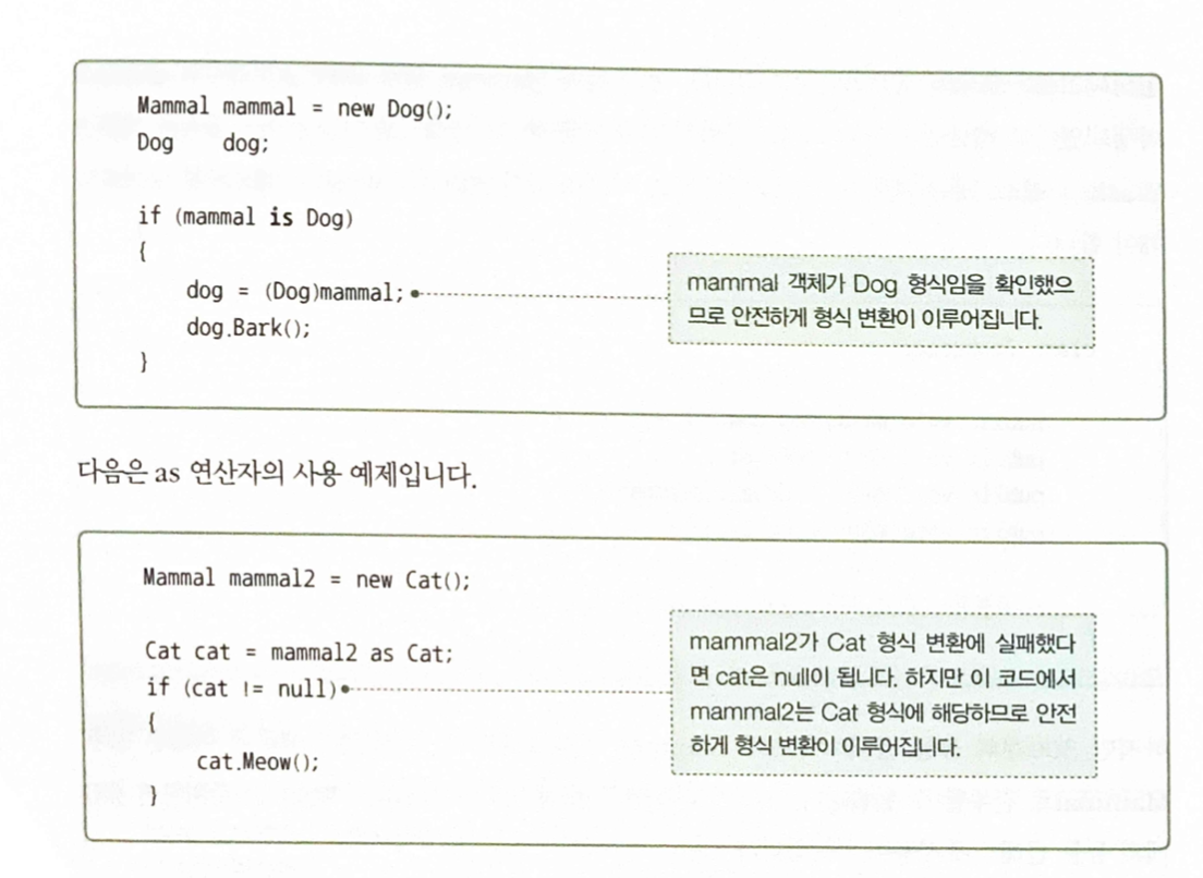 - C#은 형식 변환을 위해 아주 멋진 연산자 두개를 제공