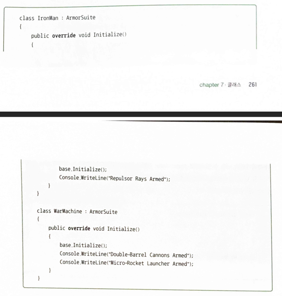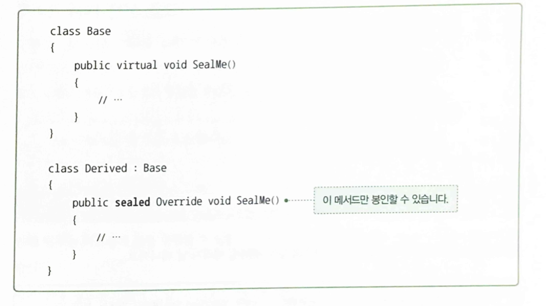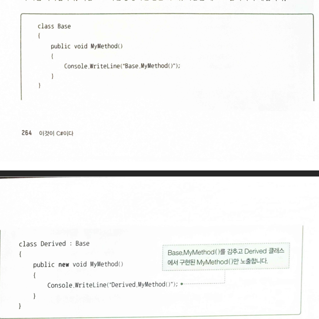 - 기반 클래스에서 구현된 버전의메소드를 감추고 파생 클래스에서 구현된 버전만 보여주는 것