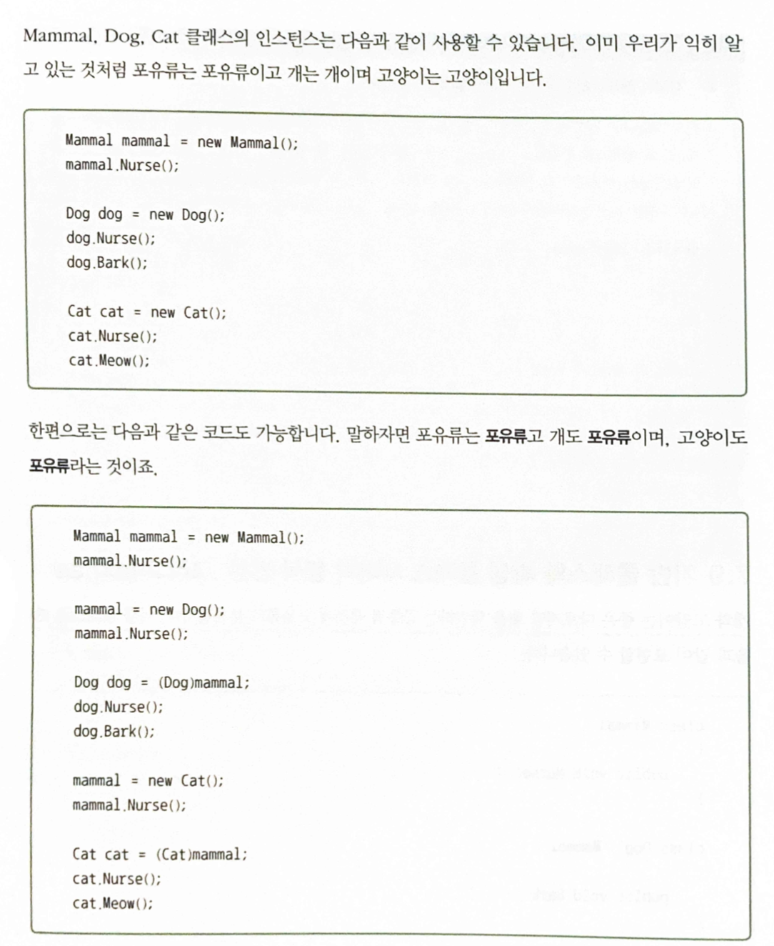- 파생 클래스의 인스턴스는 기반 클래스 인스턴스로 사용 할수 있는것
